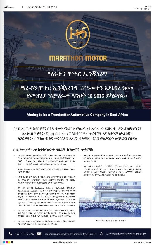 Marathon Motor Engineering PLC (MME) was founded in 2008 as importer and distributor of Hyundai vehicles and genuine parts to Ethiopia.